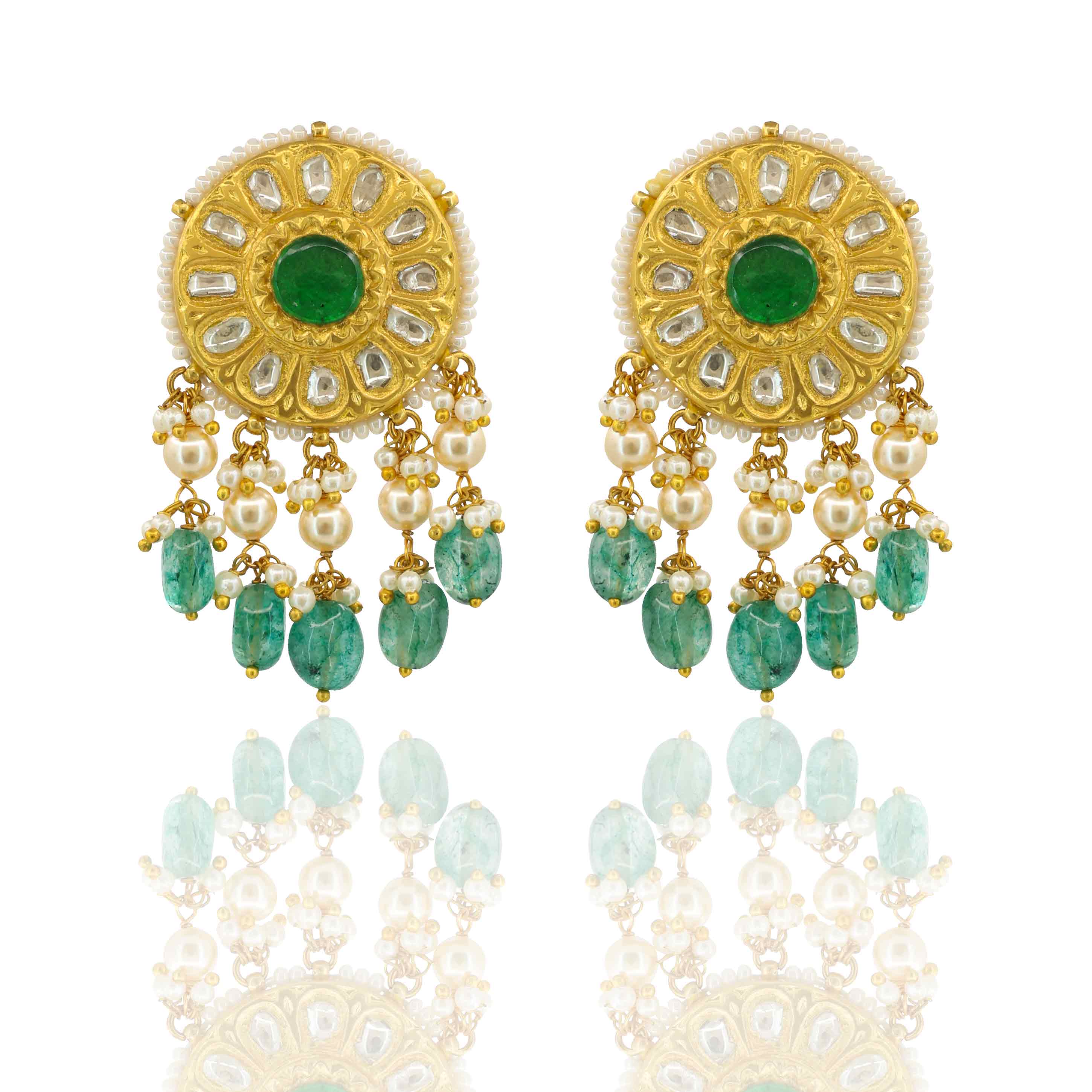 Crafted in 23KT Gold With Natural Polki Diamonds and Gemstones.