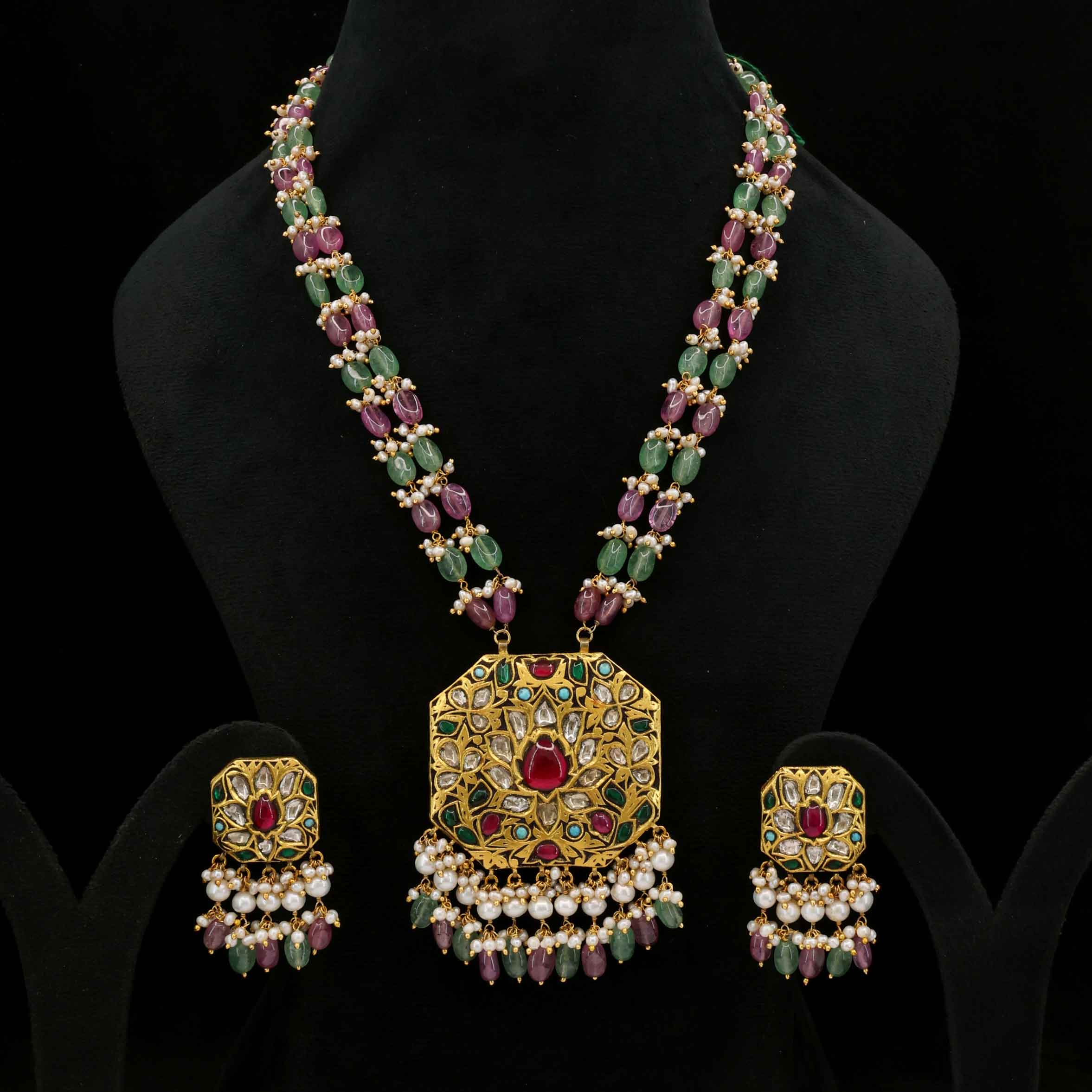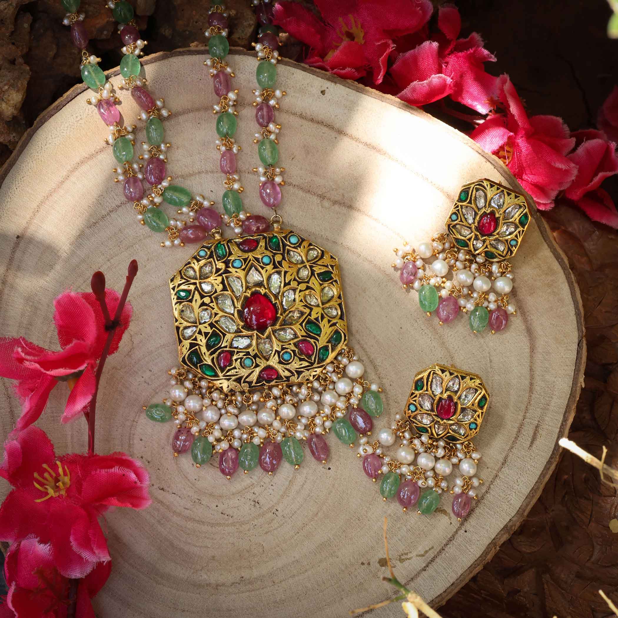 Crafted in 22KT Hallmark Gold and Natural Uncut Polki Diamond and Gemstones,