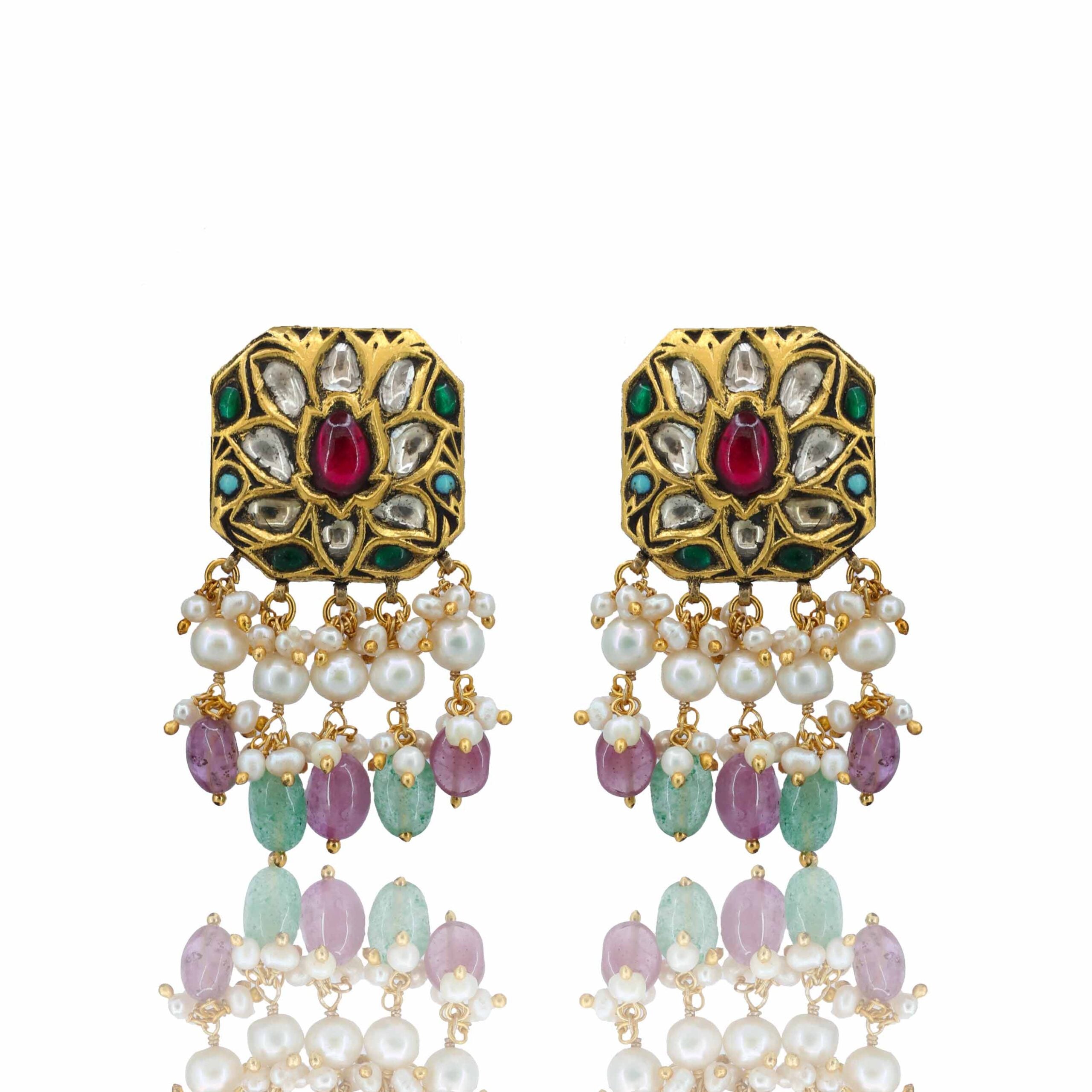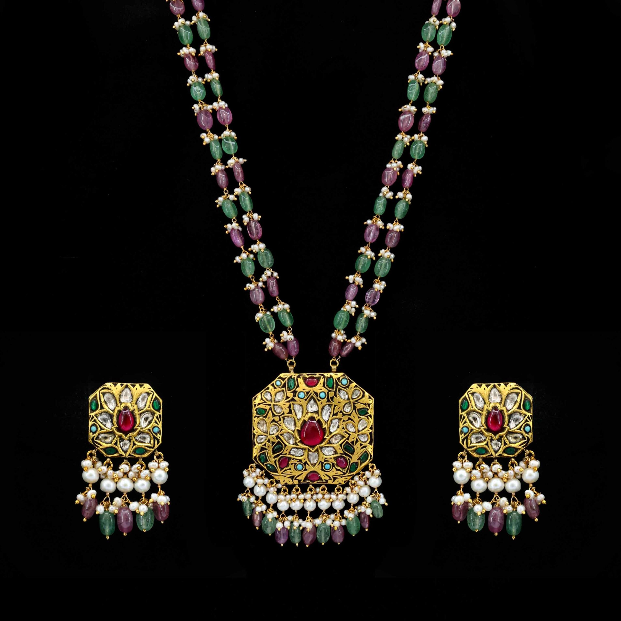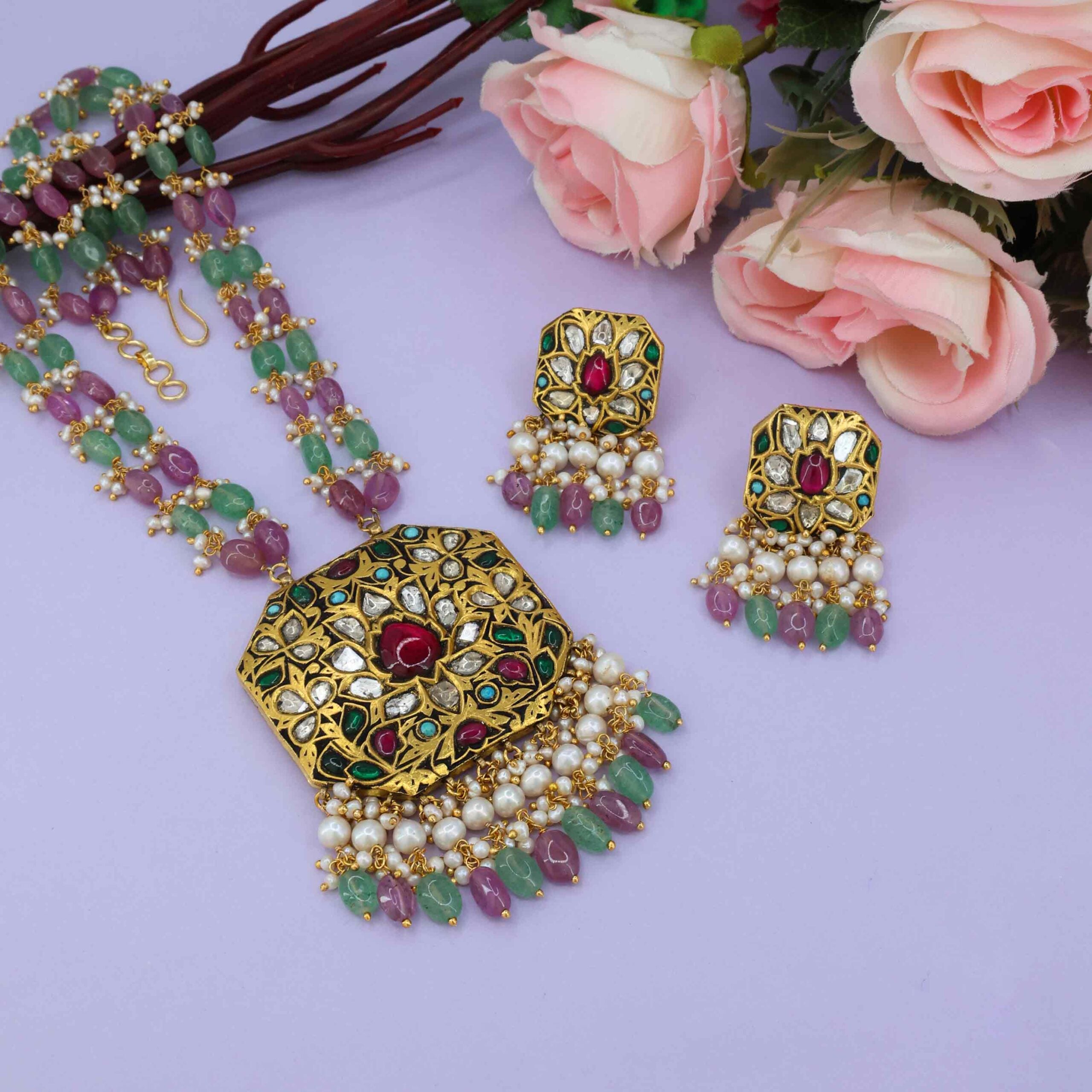 Crafted in 22kt Hallmark Gold and Natural Uncut Polki Diamond and Gemstones,