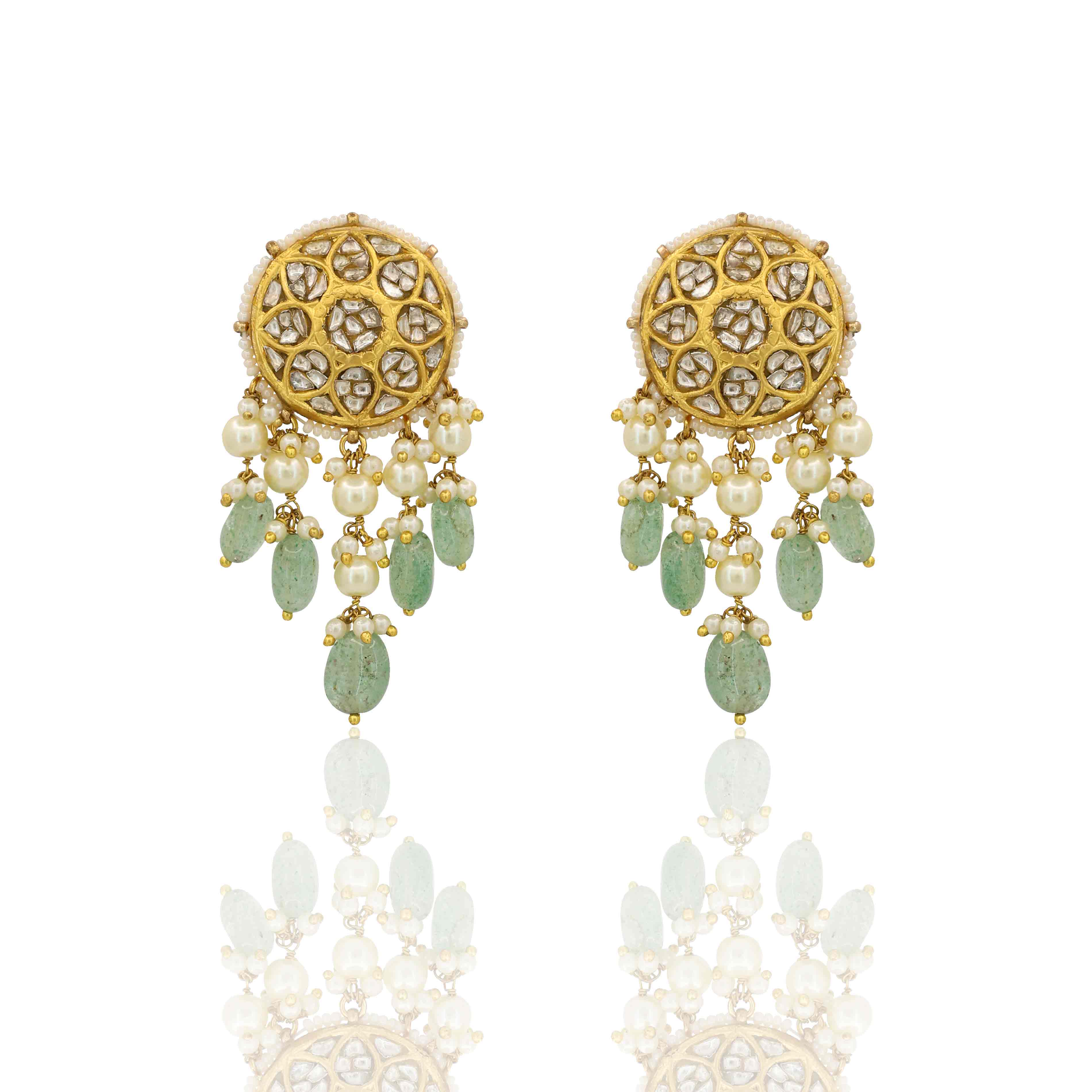 Crafted in 23KT Gold With Natural Polki Diamonds and Gemstones.