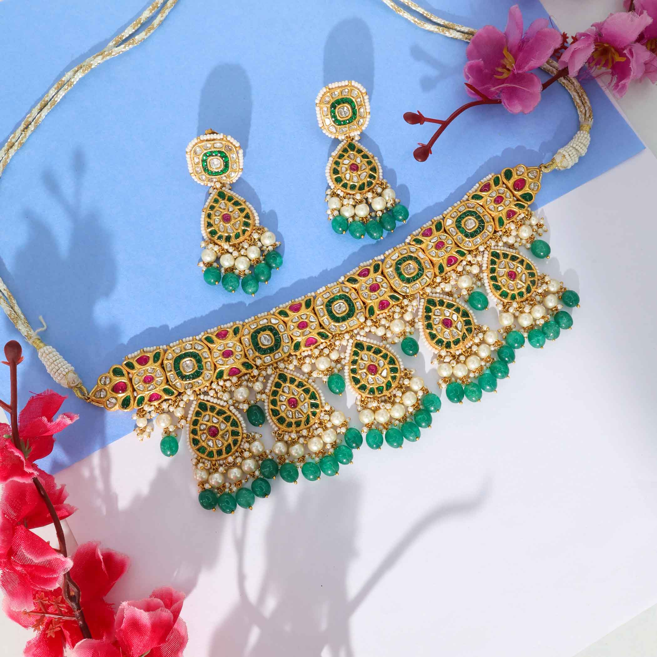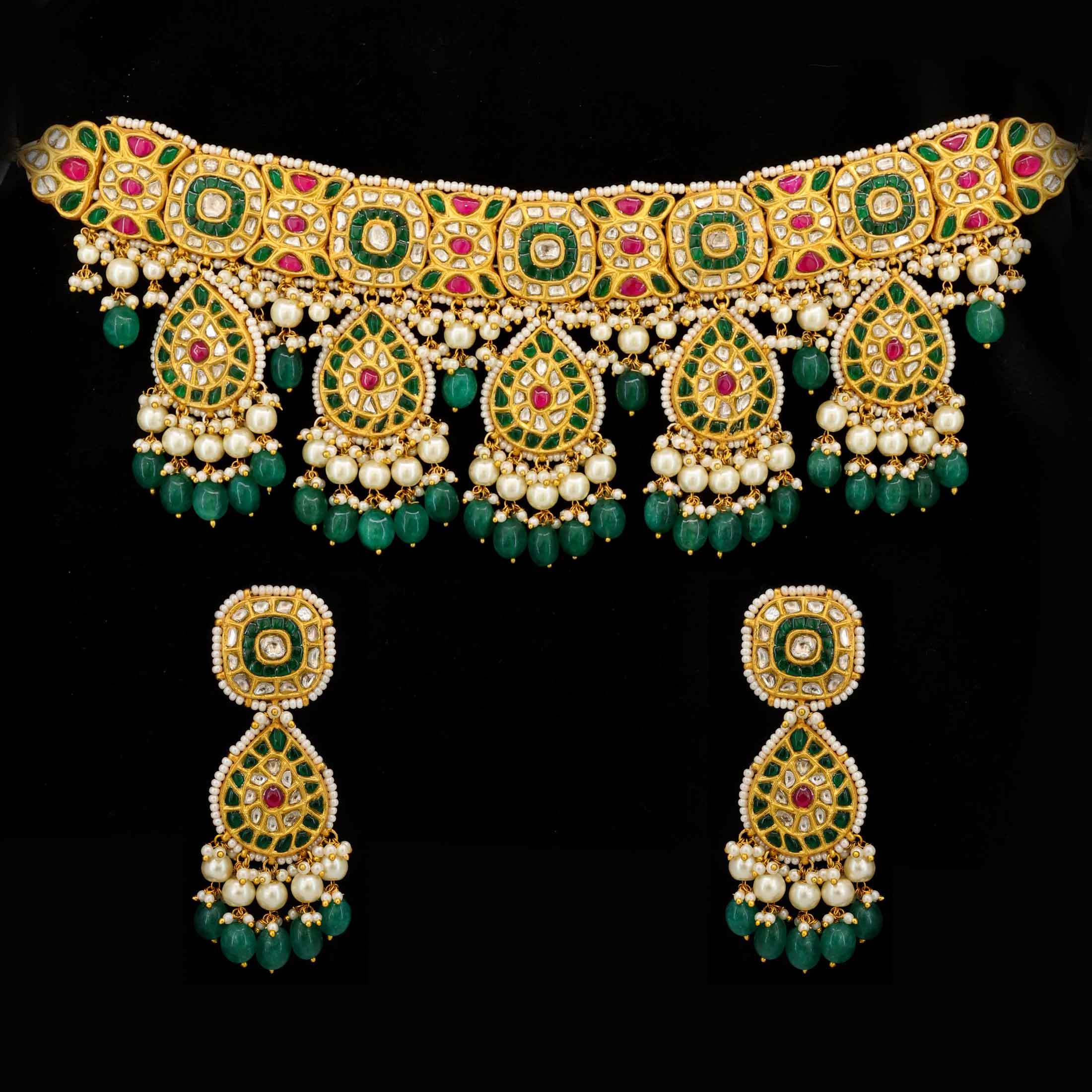 Satrangi Shringar Bridal Gold Polki Necklace Set