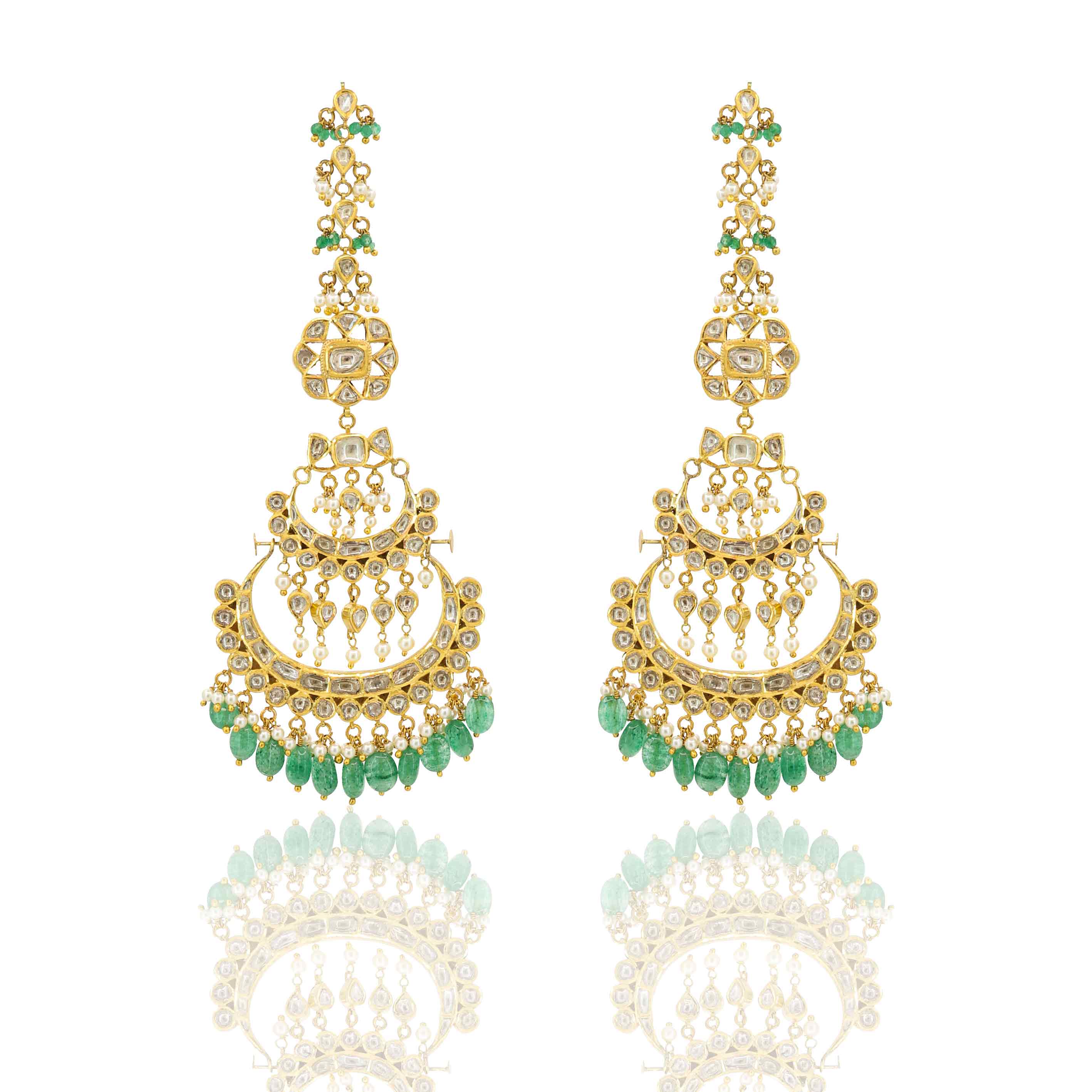 Gold Jadau Chand Bali Earring