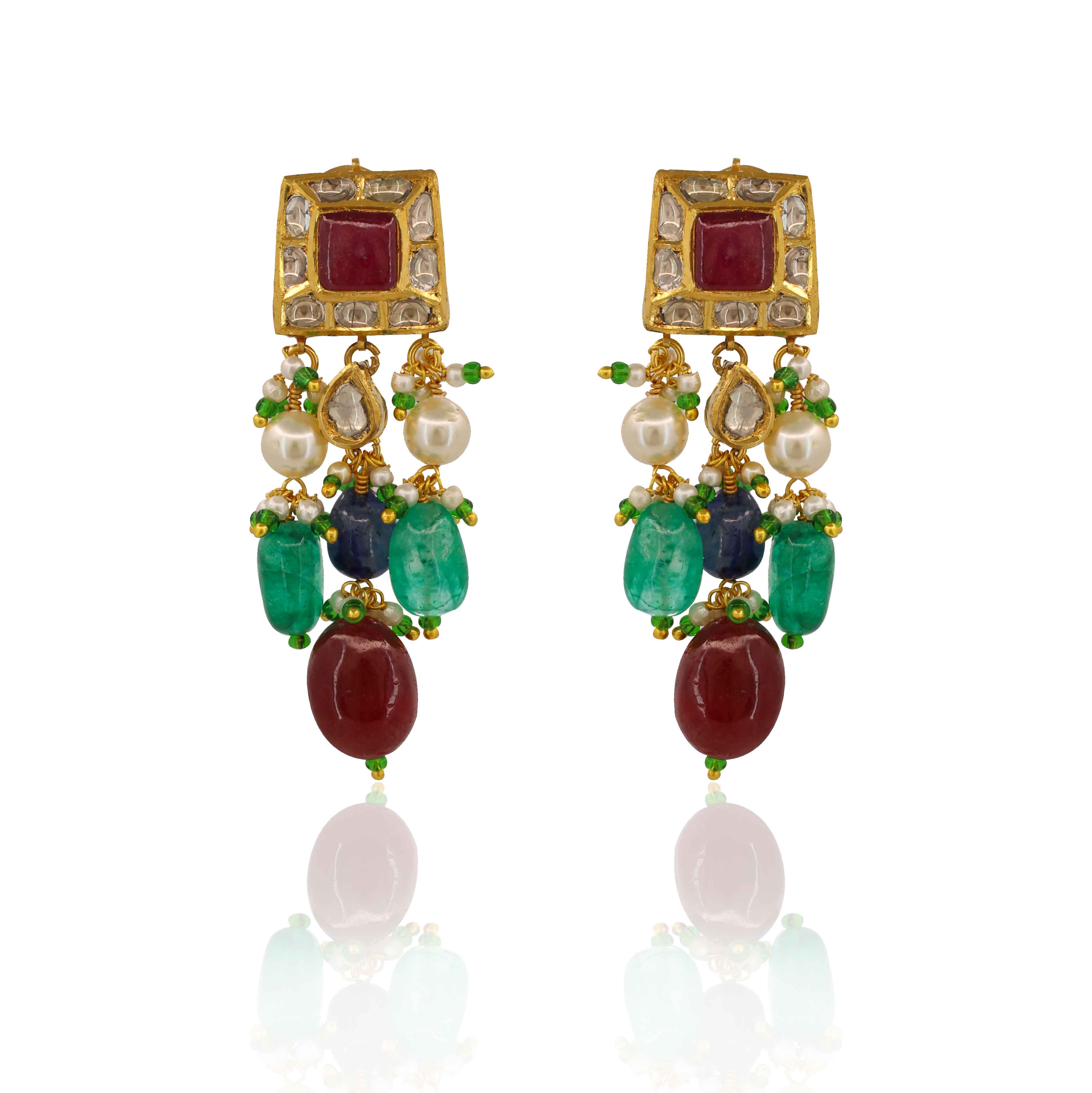 Crafted in 18kt Gold and Natural Uncut Polki Diamond and Gemstones, Certified Jewelry