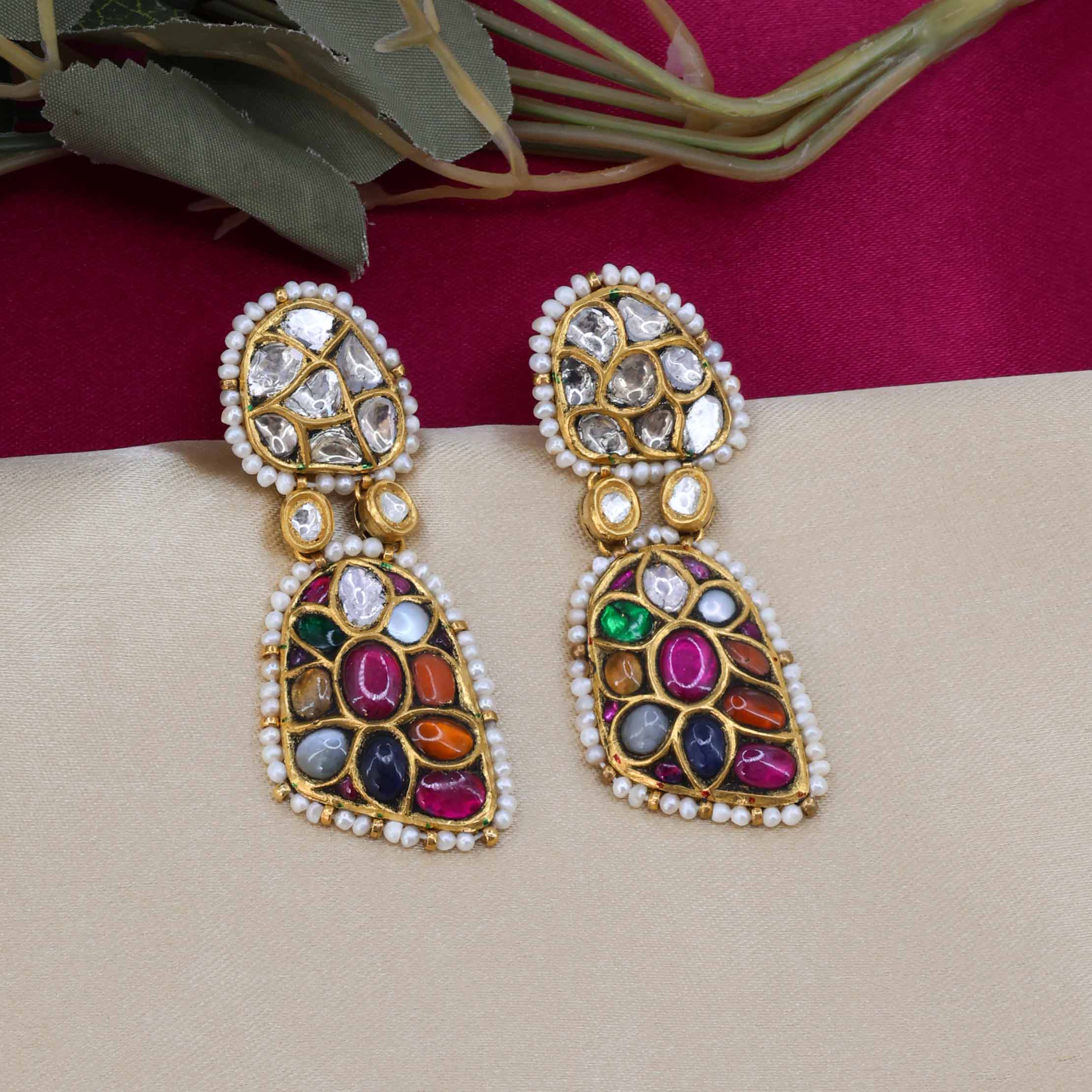 Stone : Multi Colored Stone and Polki Diamond Earring