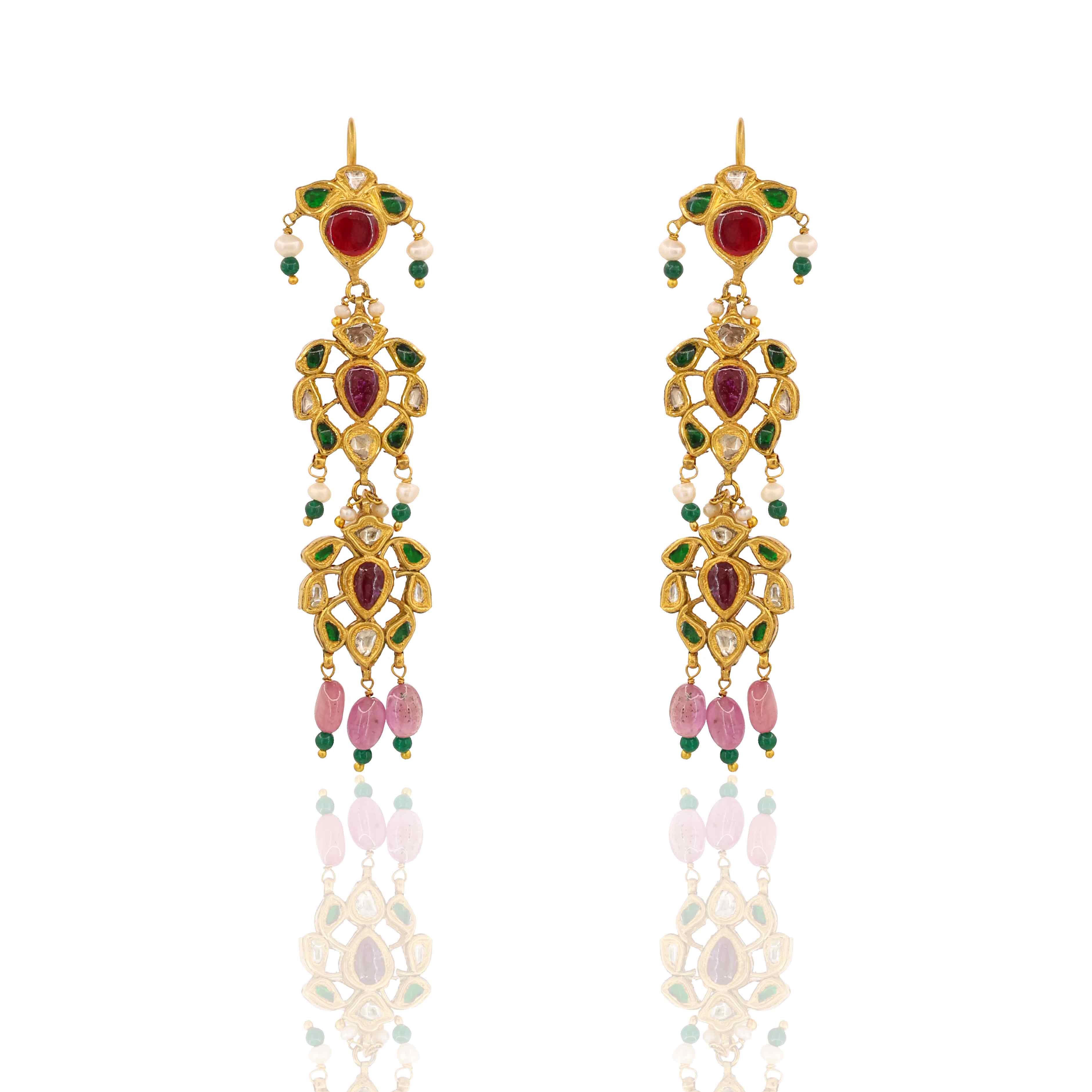 Crafted in 23kt Gold and Natural Uncut Polki Diamond and Gemstones, Certified Jewelry
