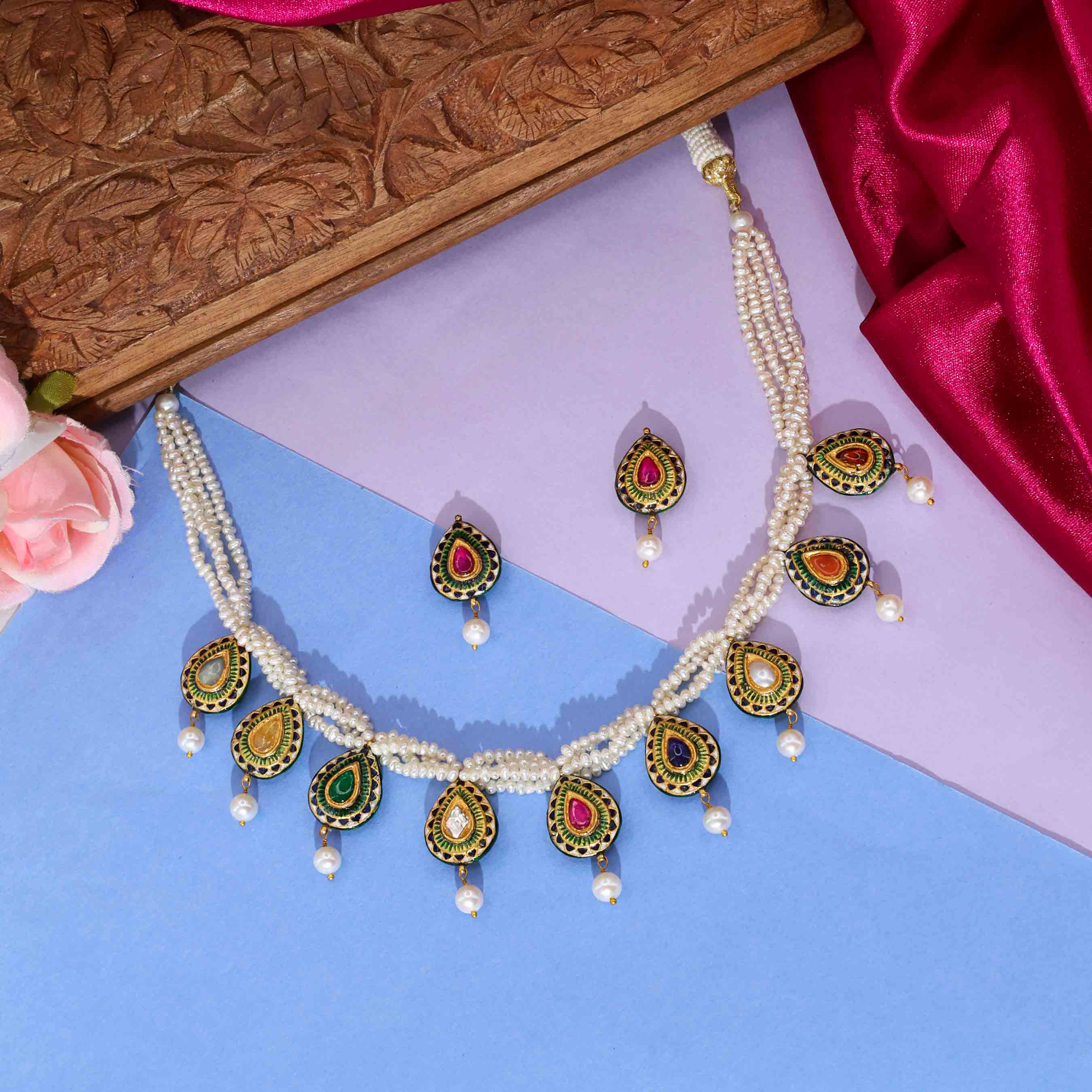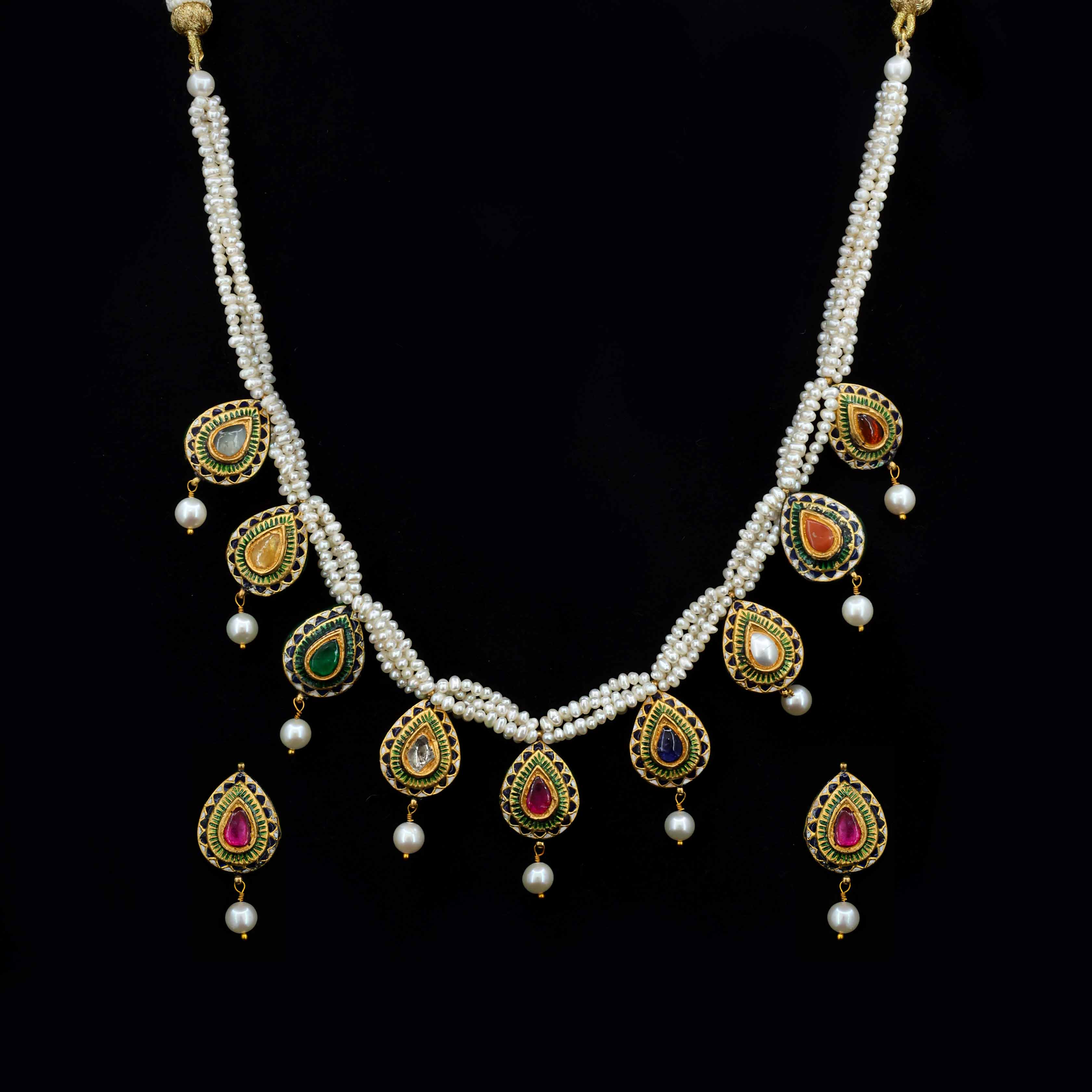Nine Gemstone Pear Drop Necklace Set