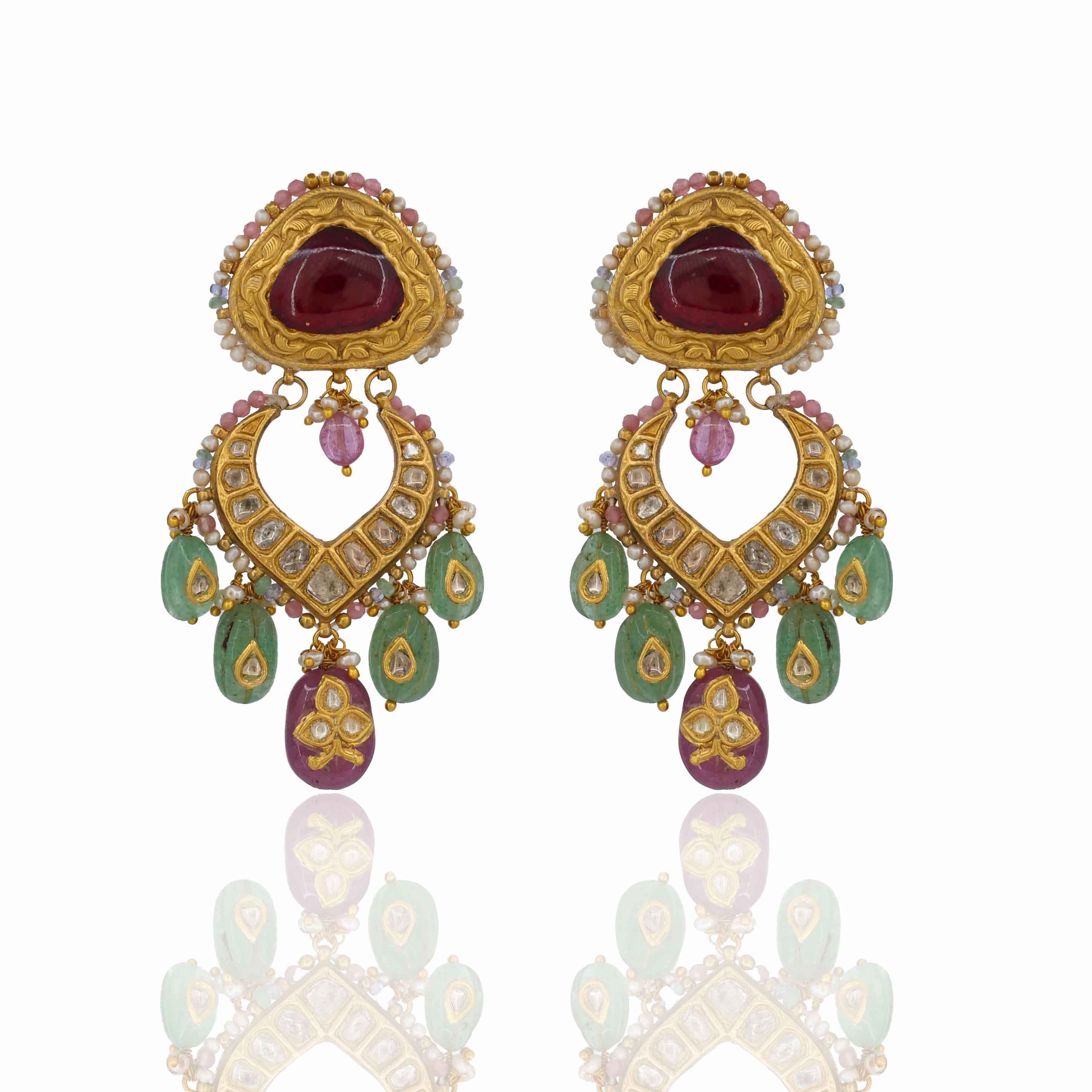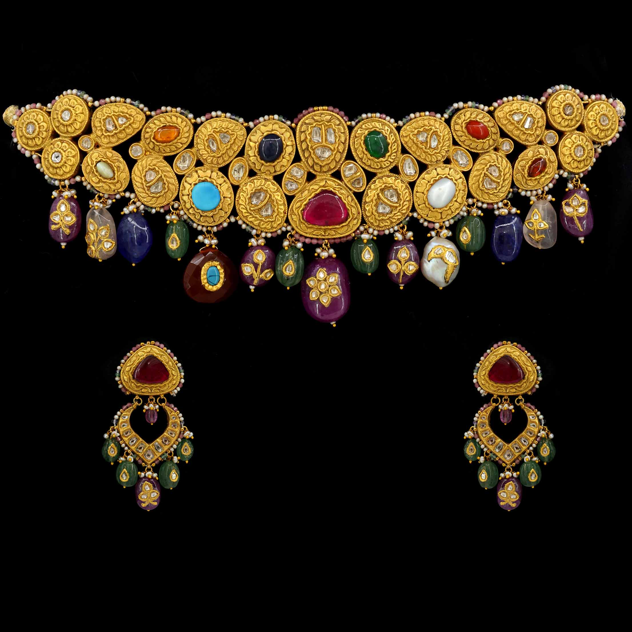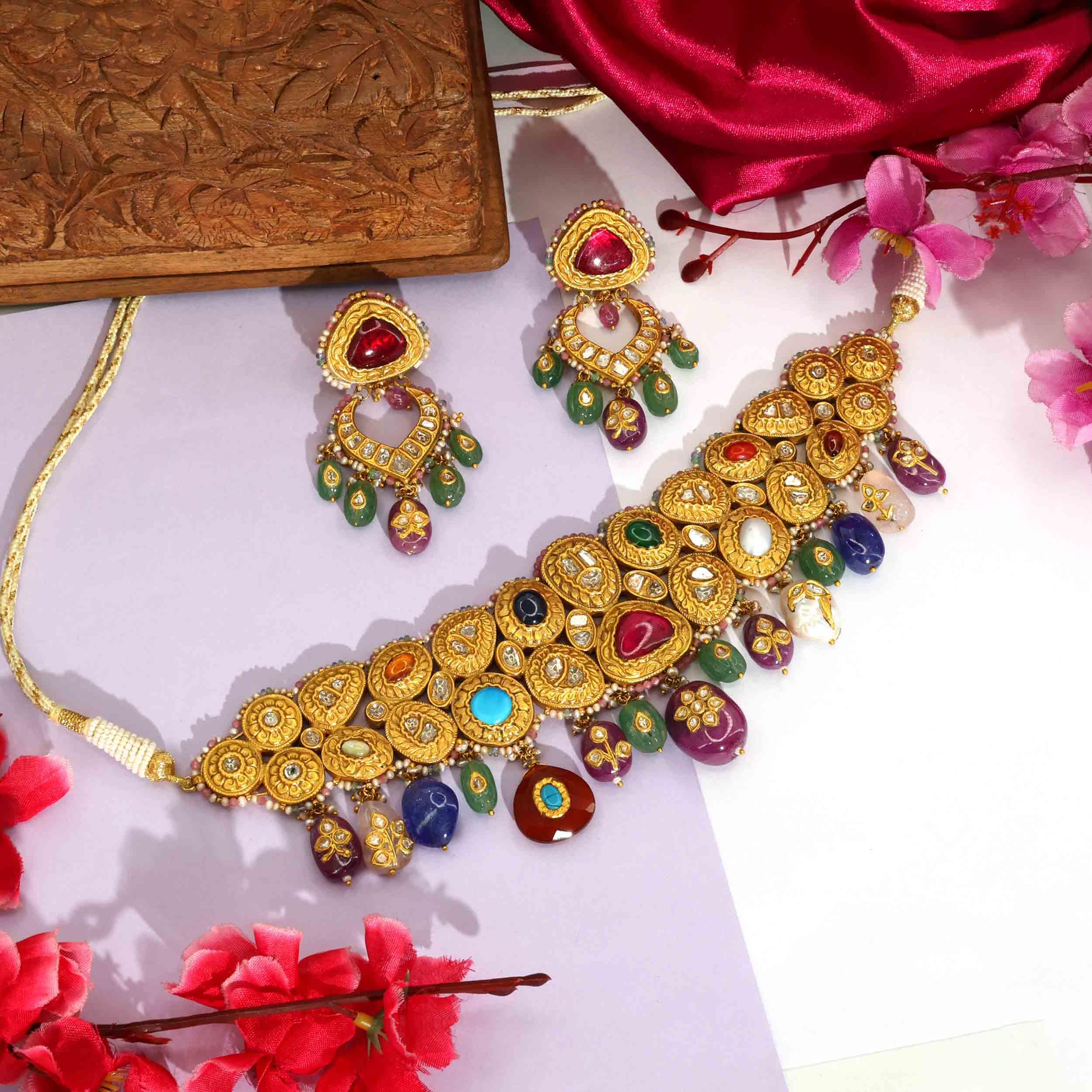 Rangratna Polki Set, Gold Chocker Necklace Set