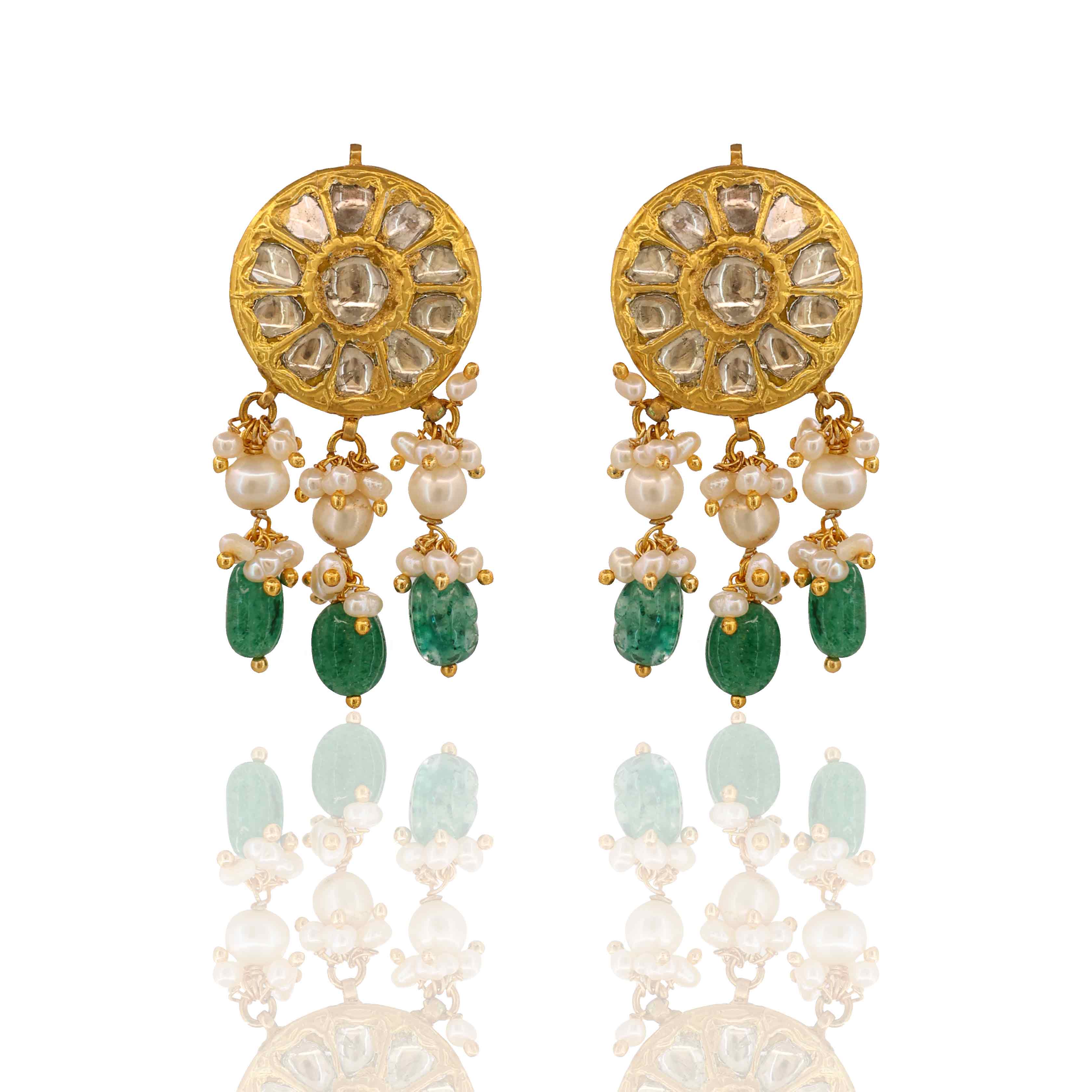Crafted in 23KT Gold With Natural Polki Diamonds and Gemstones.
