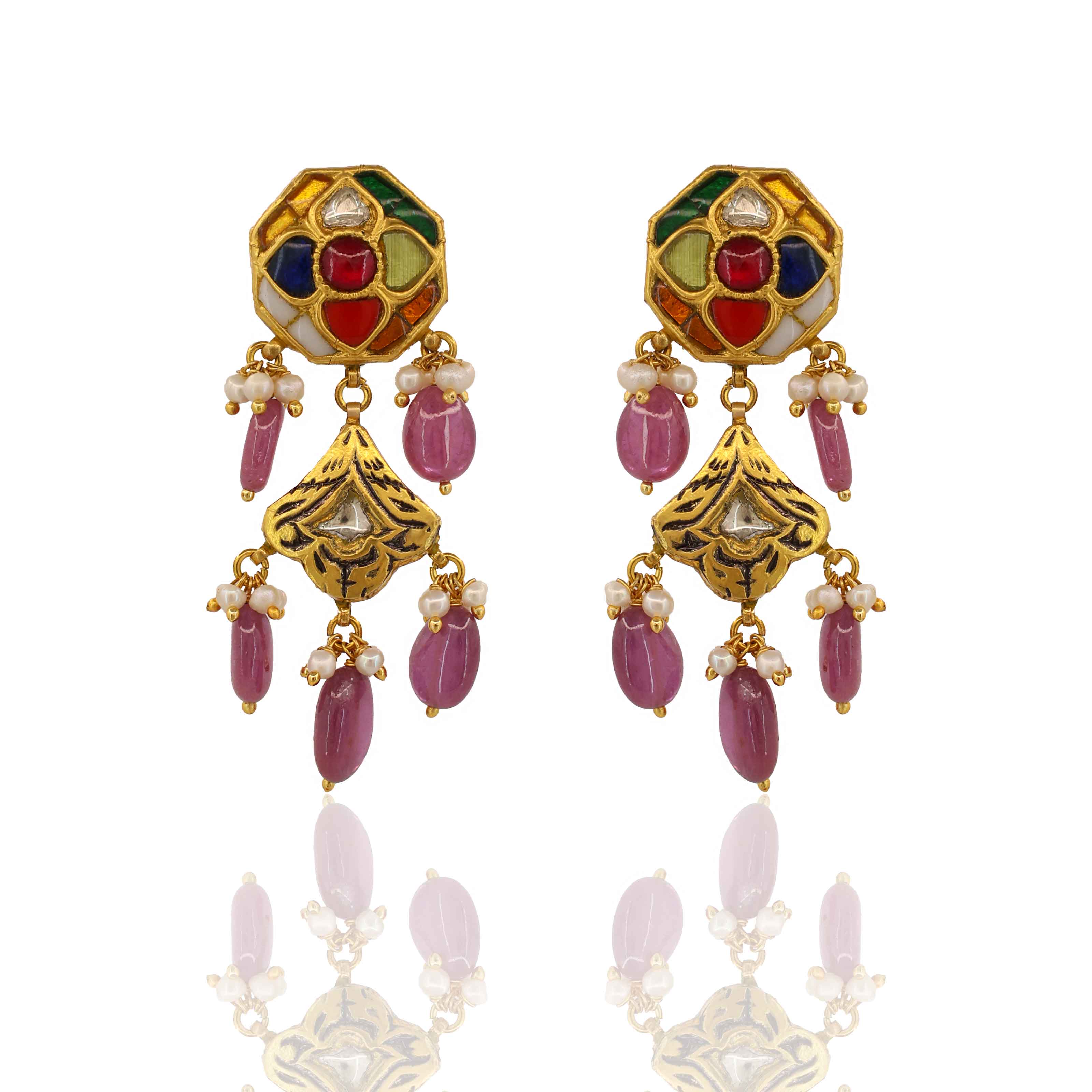 Crafted in 23KT Gold With Natural Polki Diamonds and Gemstones.