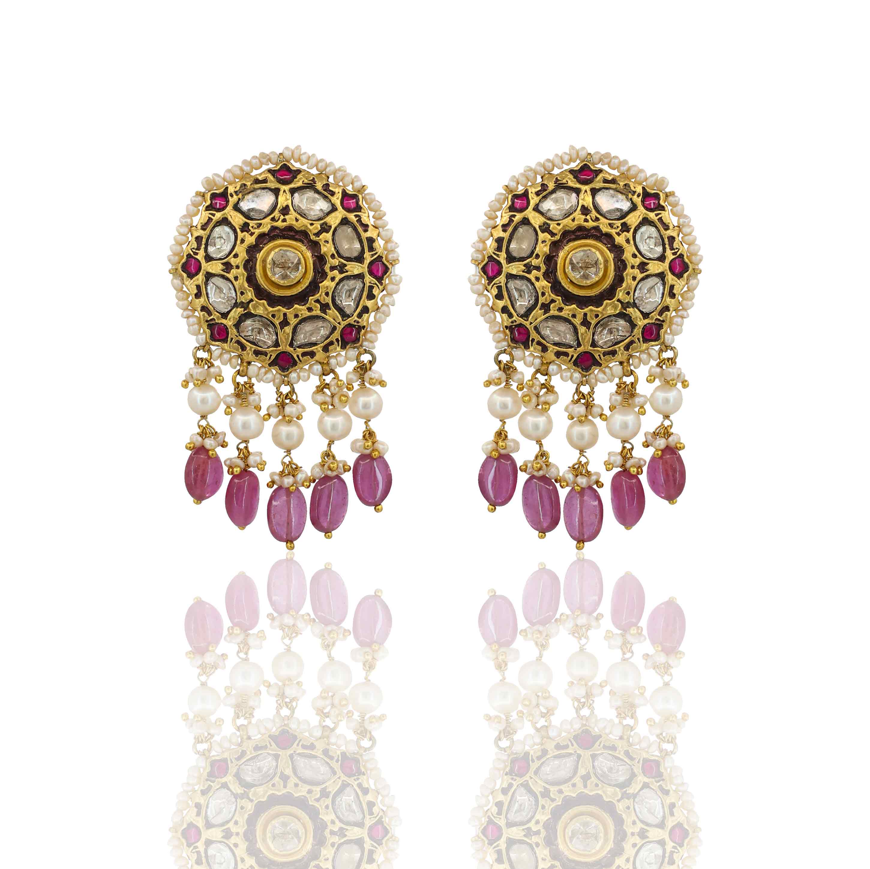 Crafted in 23KT Gold With Natural Polki Diamonds and Gemstones.