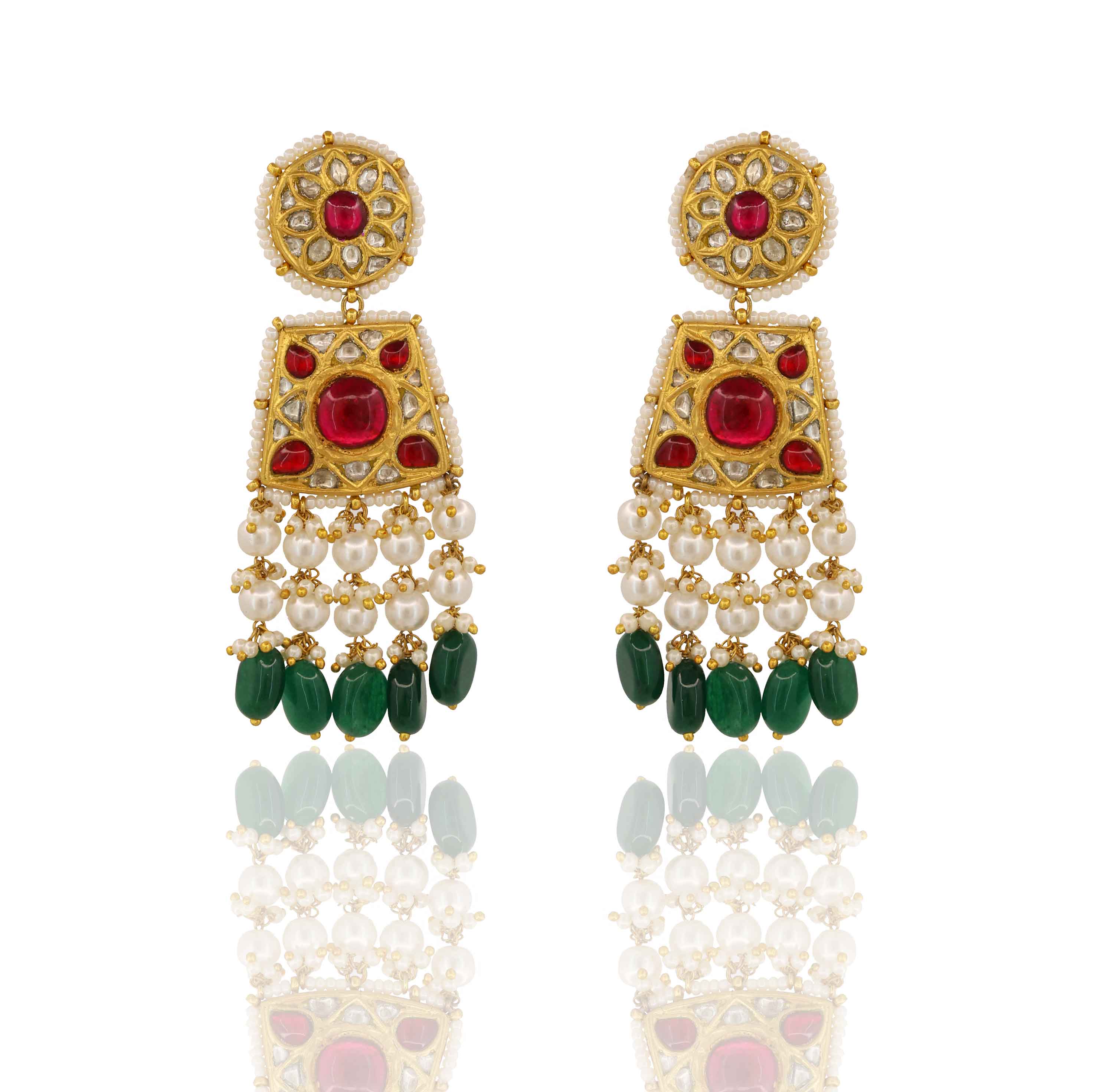 Gold Navratna Polki Diamond Choker Set with Pearl & Emerald Drops