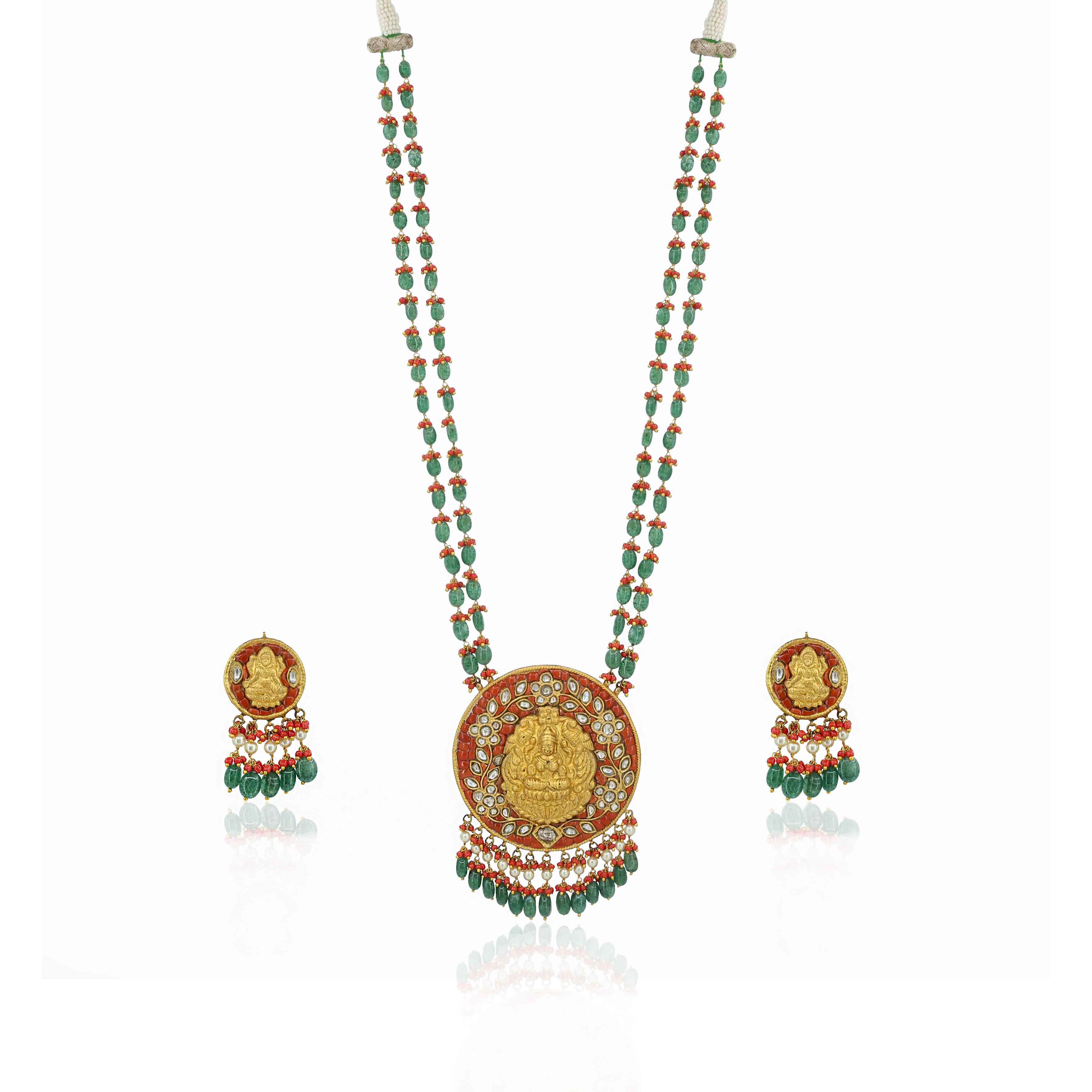 Vijaya Lakshmi Gold Polki Diamond Pendant Set