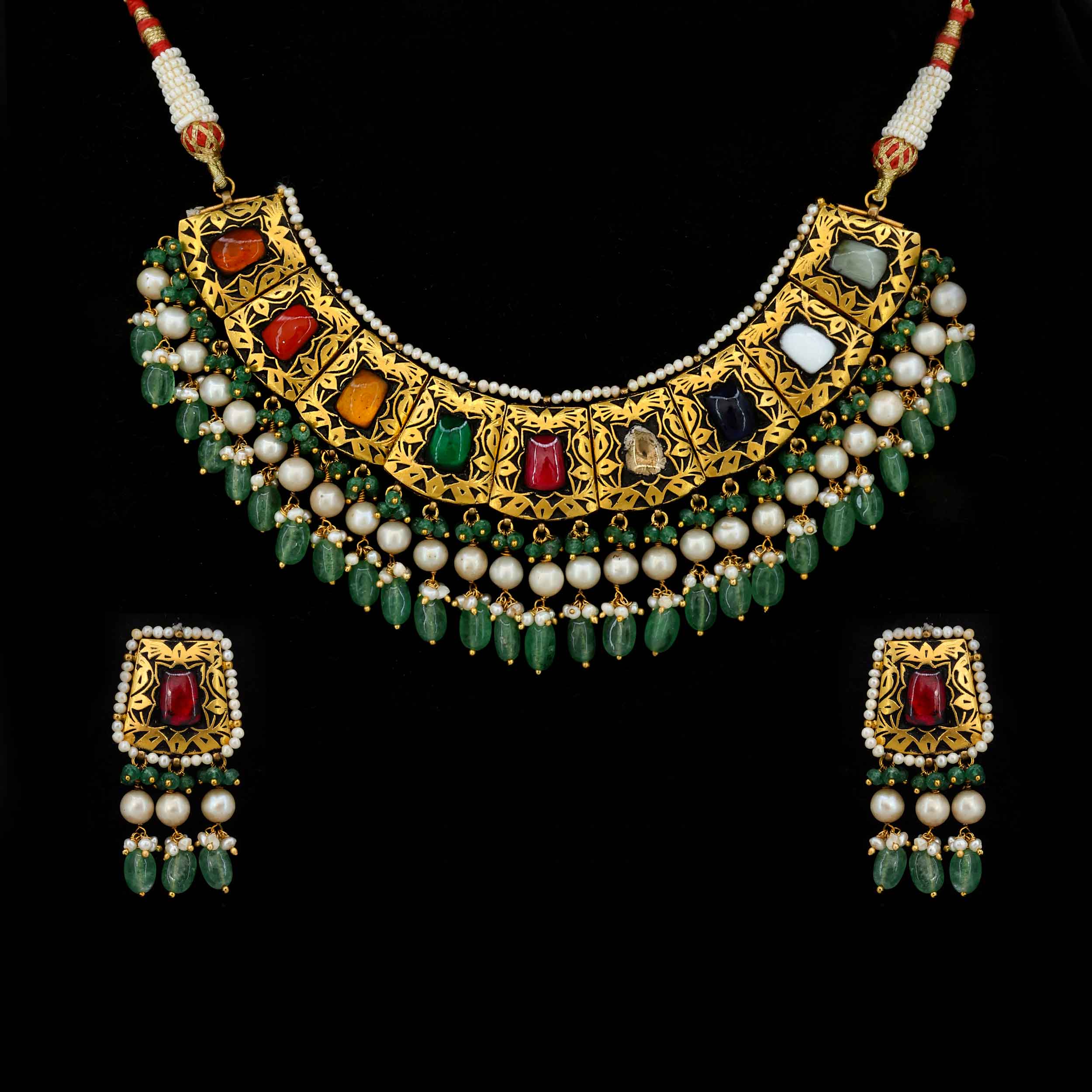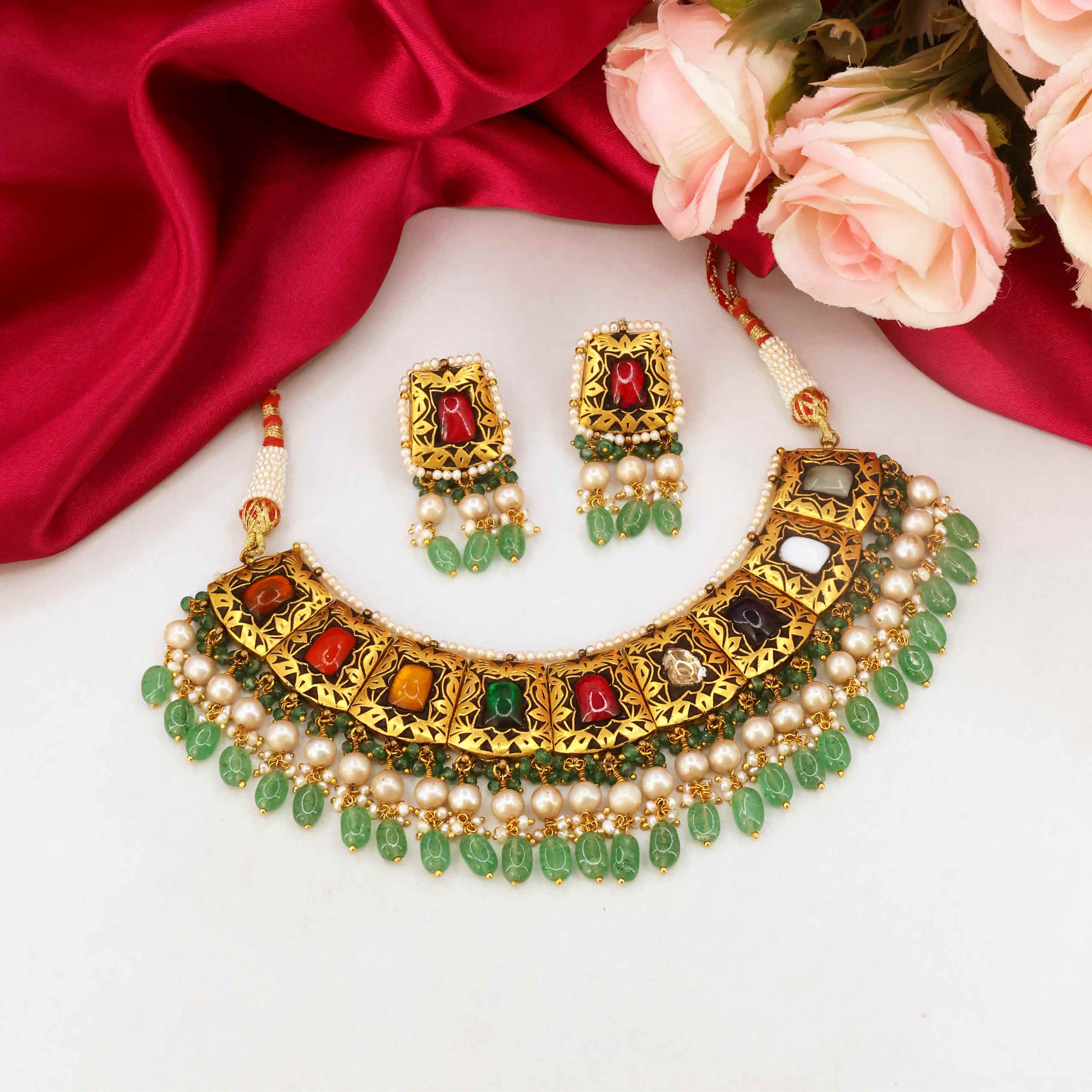 Sarvashakti Navratna Gold Chocker Necklace Set