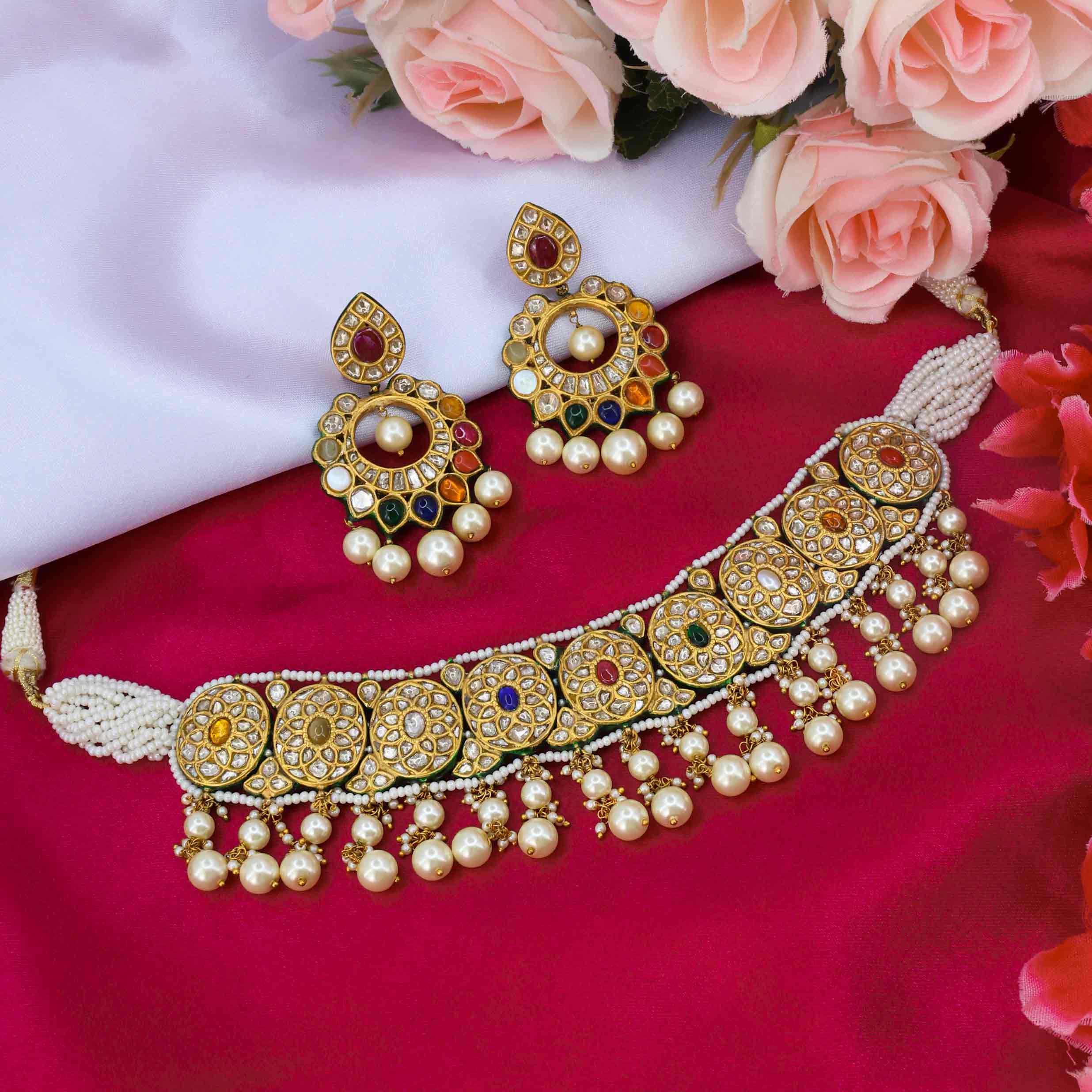 Padmamukhi Navratna Gold Chocker Necklace Set