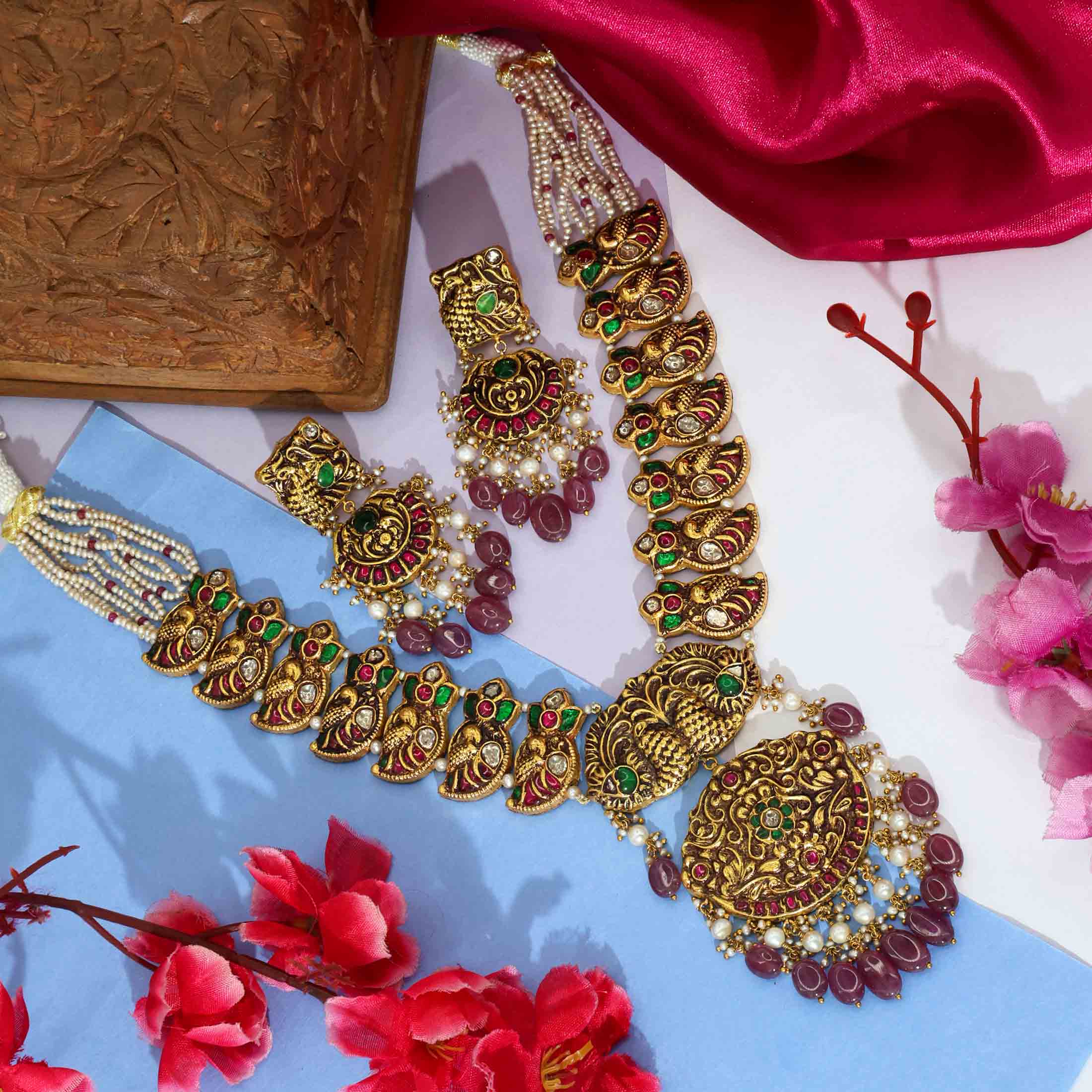 Mayura Rajnidhi Gold Necklace Set (Hallmark-91.6)
