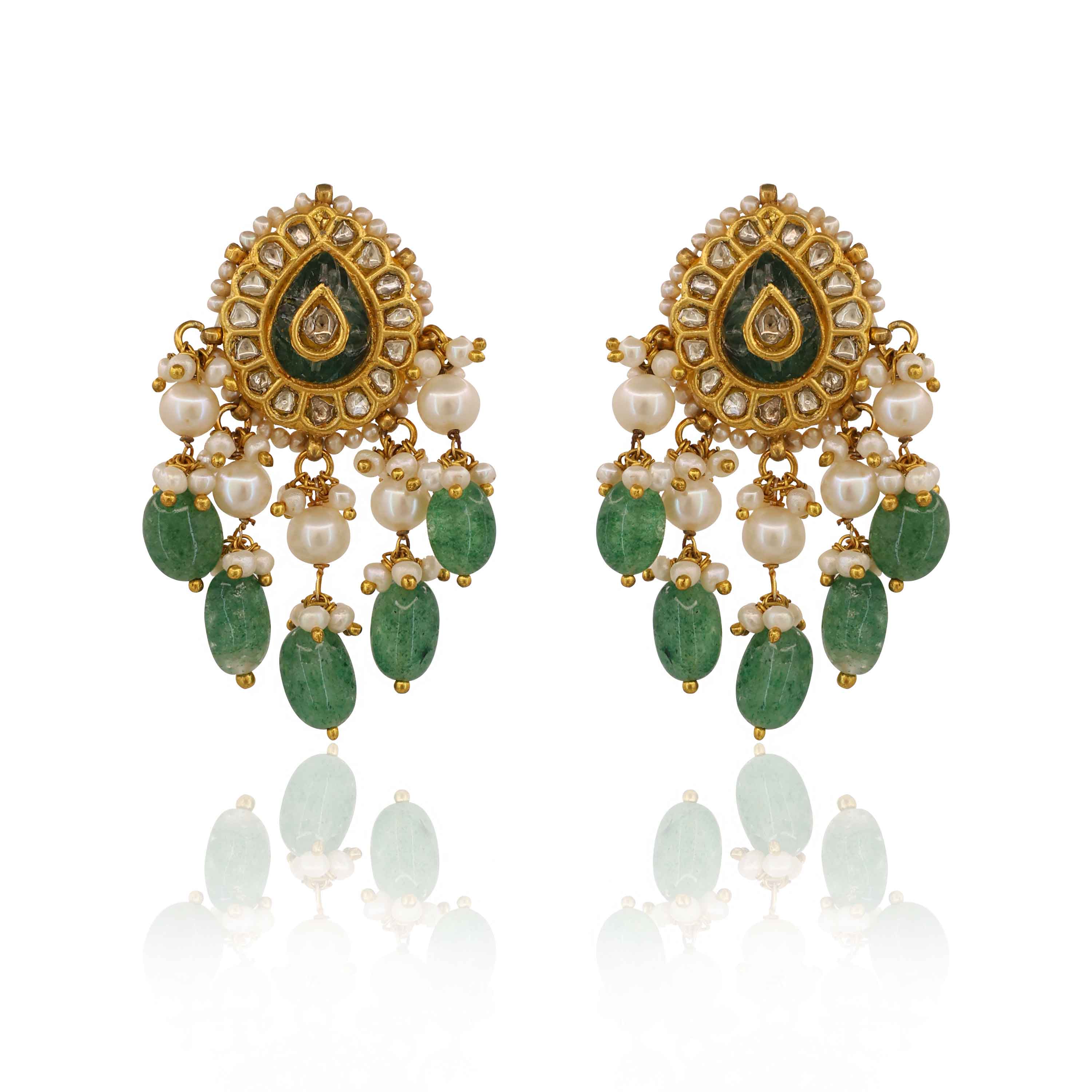 Crafted in 23KT Gold With Natural Polki Diamonds and Gemstones.