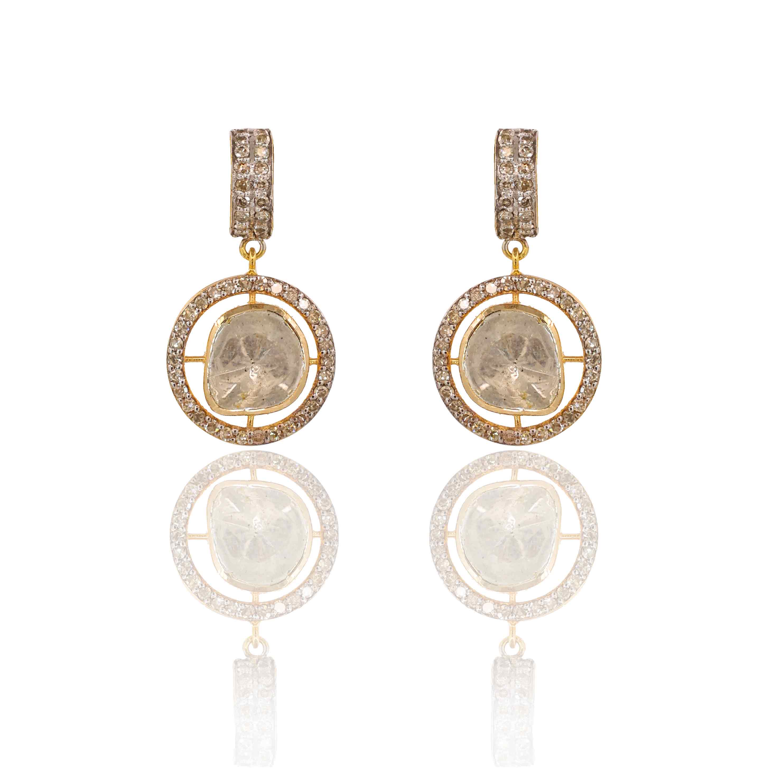 Crafted in 14KT Hallmark Gold With Natural Polki Diamonds and Gemstones.